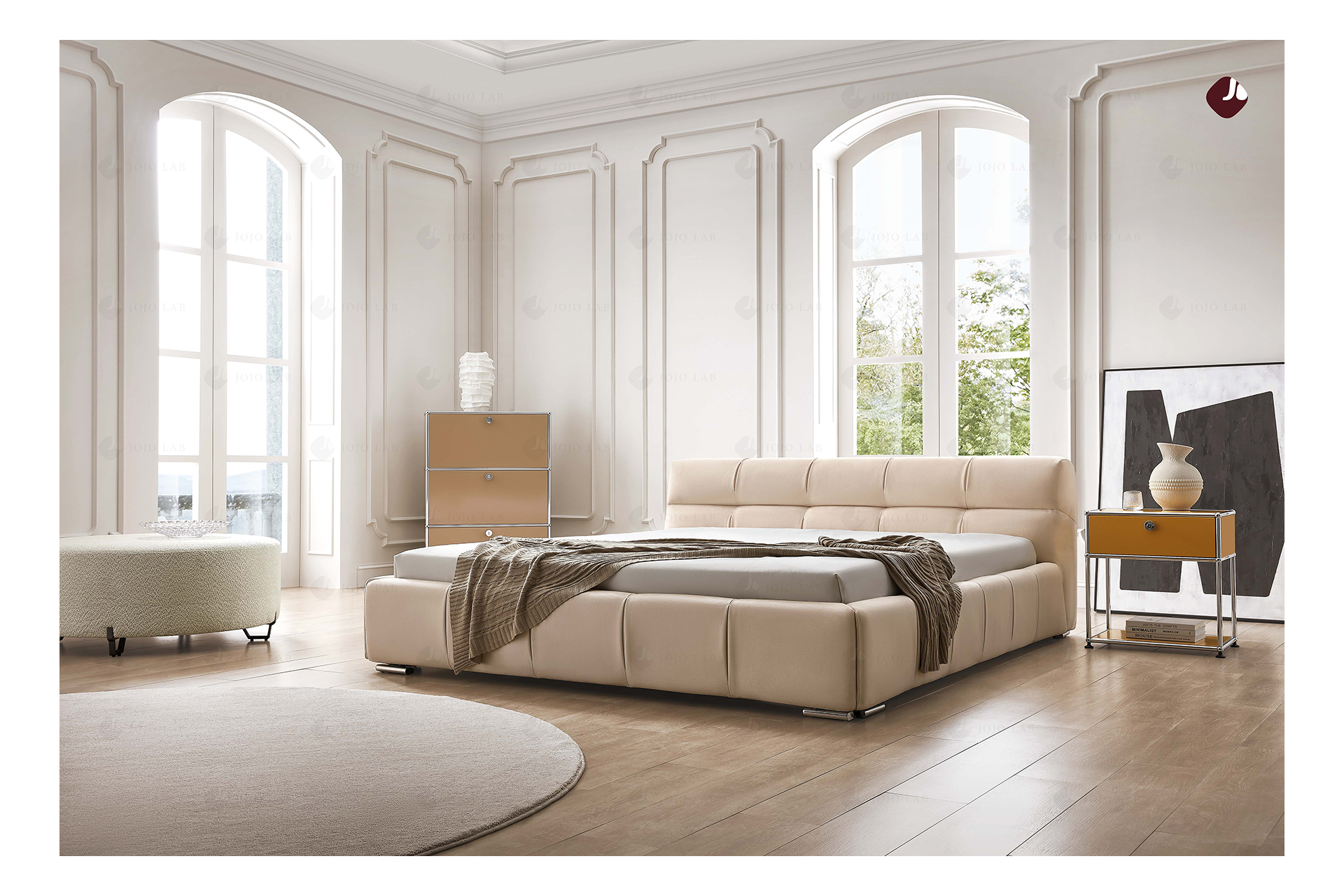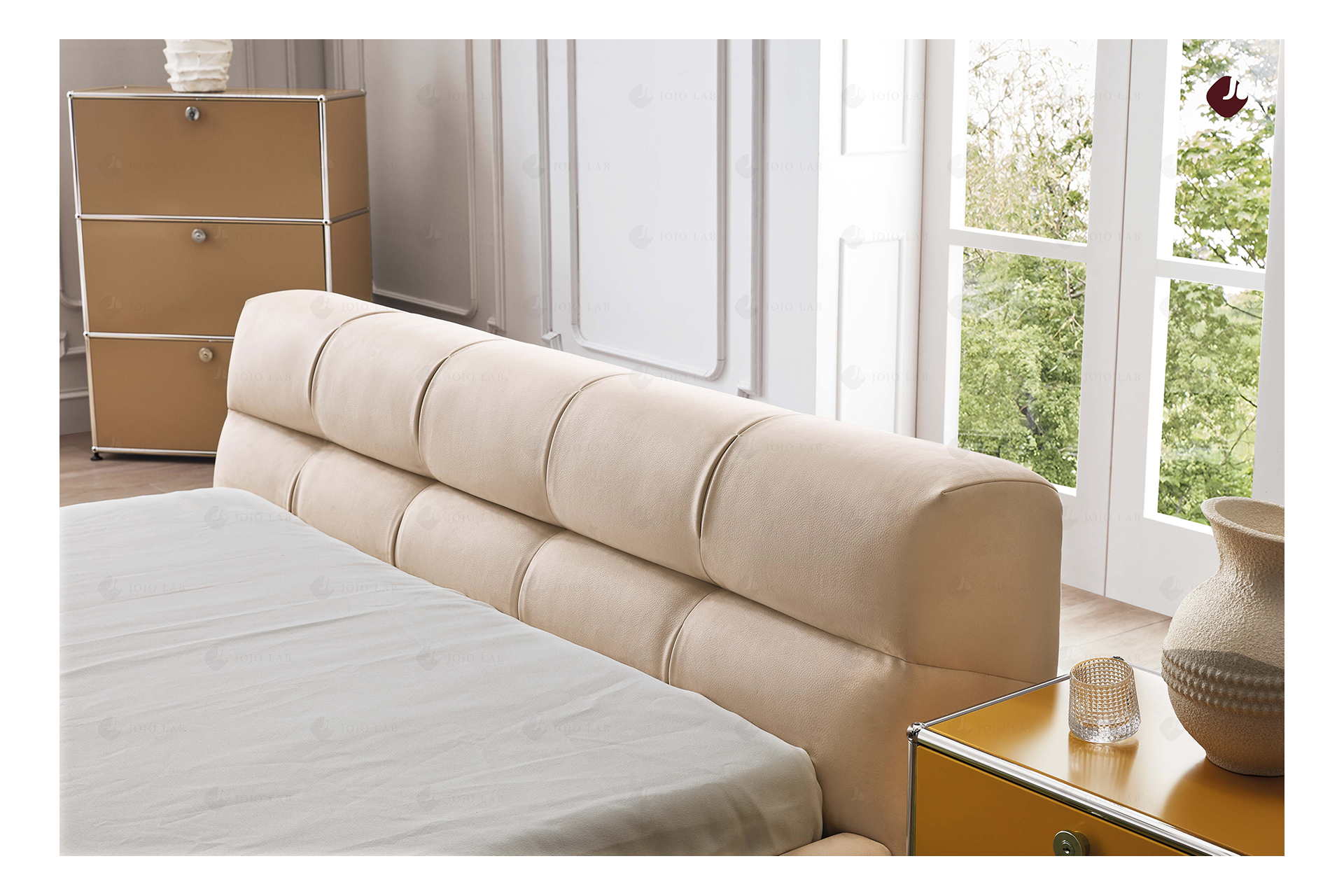 材质: 主材:俄罗斯松木+实木多层板 床脚:3公分镀金脚 主体填充物:高密度海绵 面料:磨砂布:F705-02