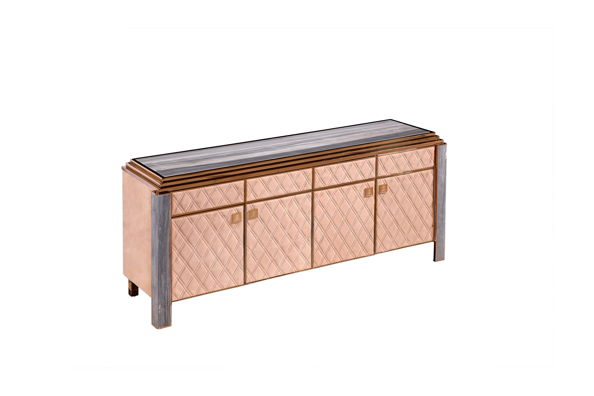 玫瑰金+磨砂皮+蓝金沙理石