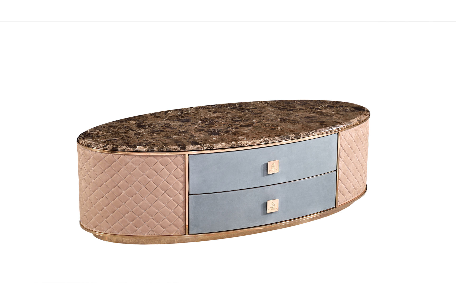 玫瑰金+磨砂皮+啡网理石