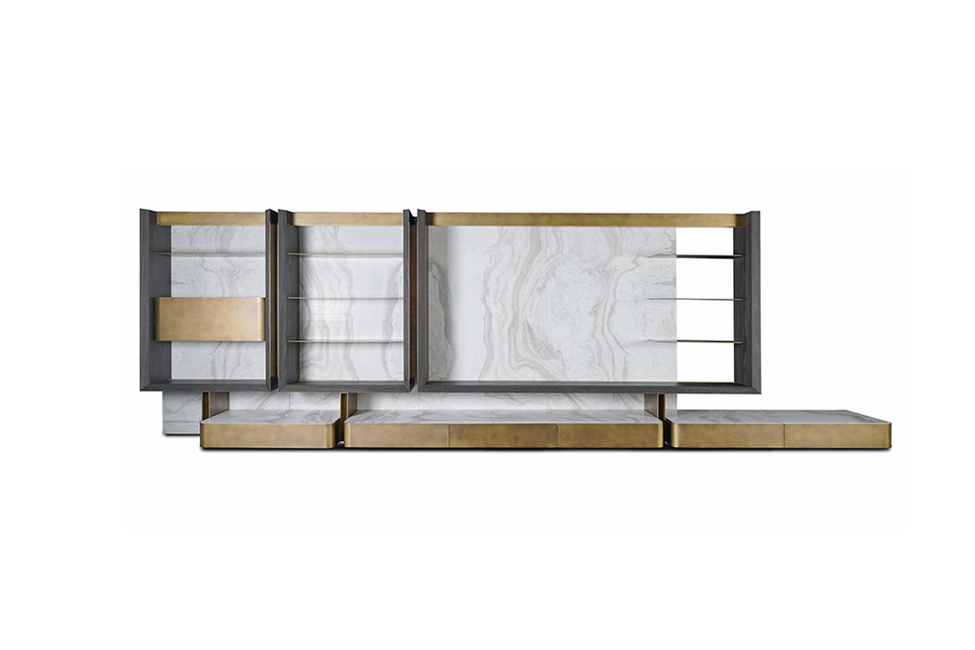 不锈钢+实木多层板贴木皮+岩板