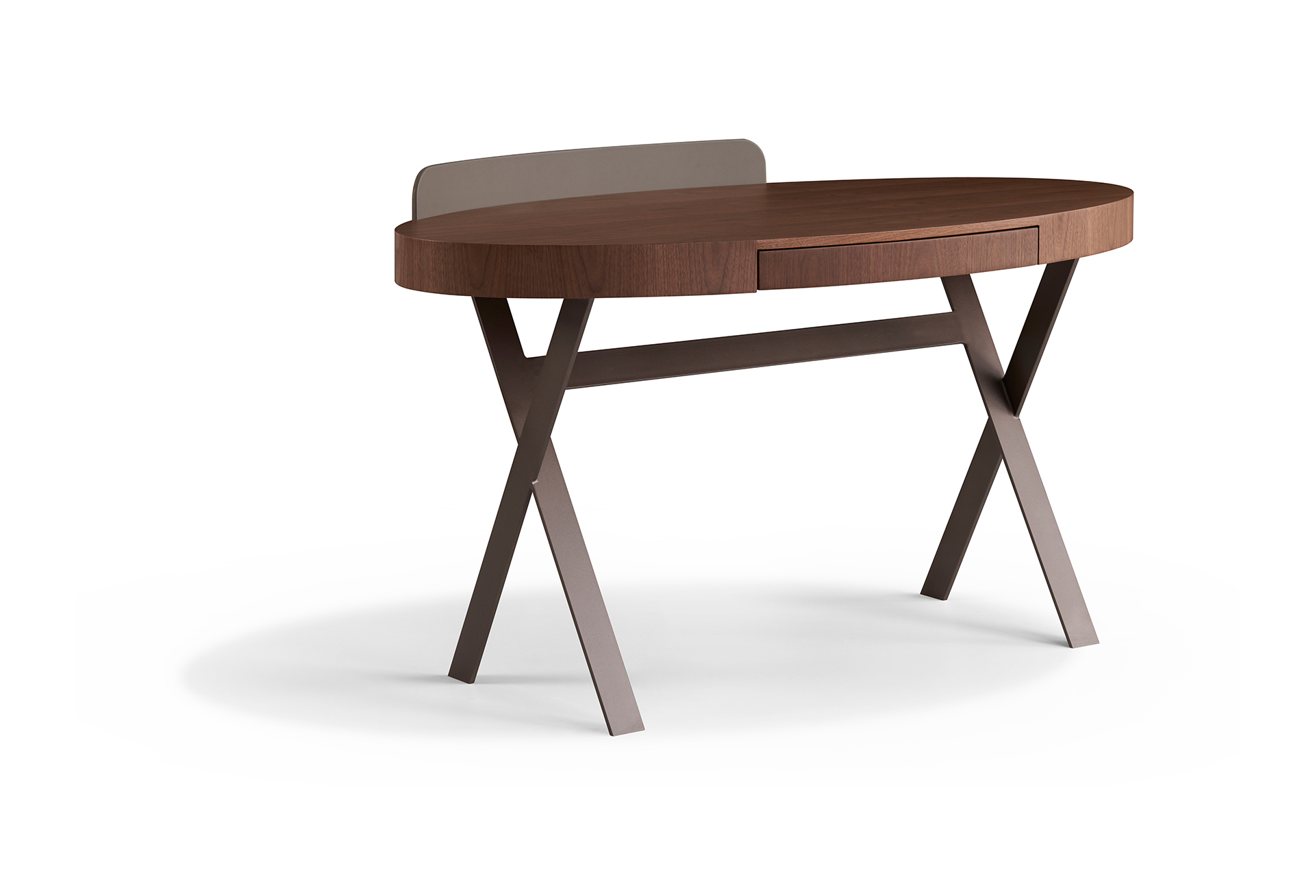 天然胡桃木皮+马鞍革装饰挡板,铁架脚喷咖啡金属漆