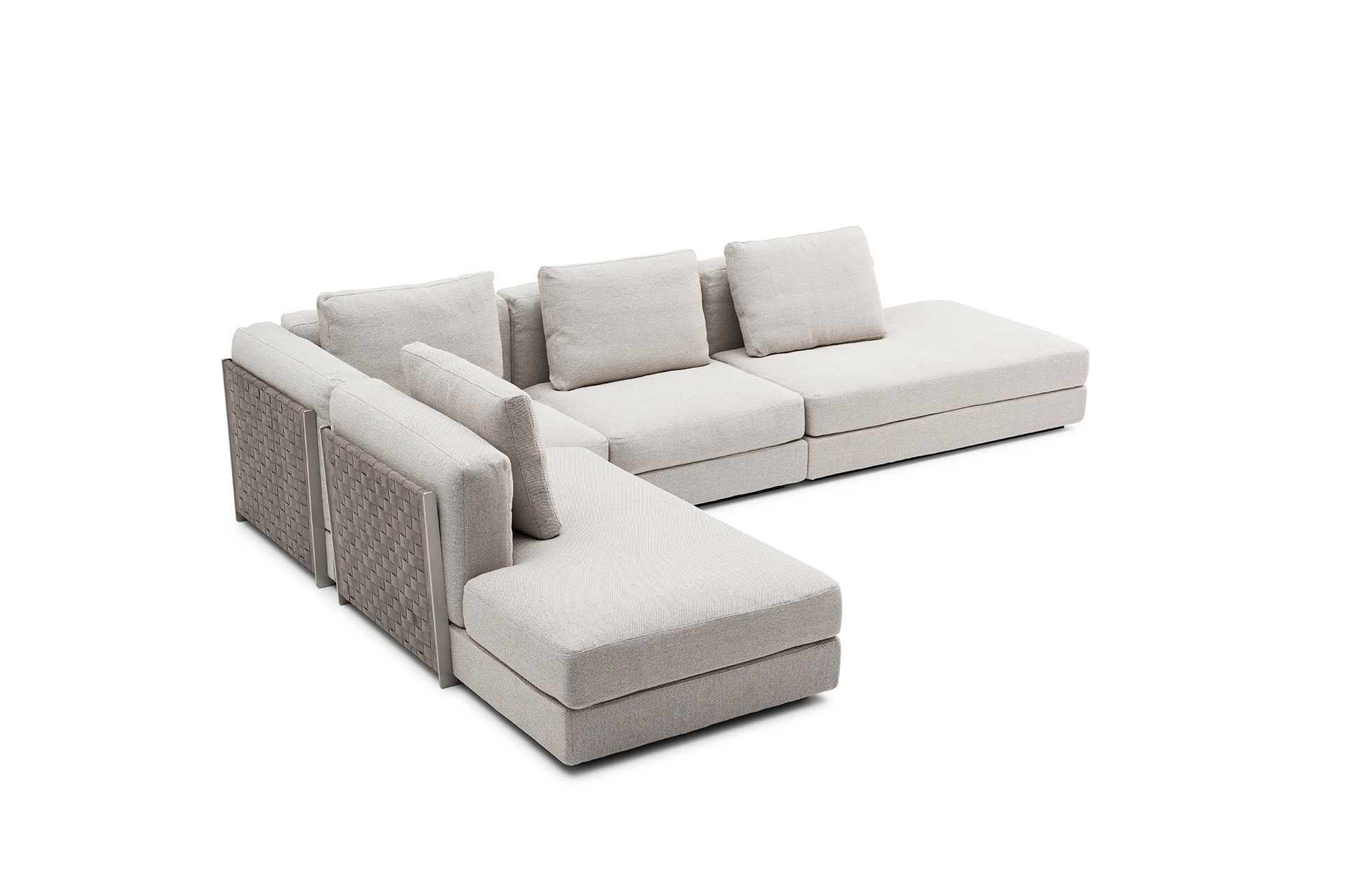 实木内架+喷漆铁脚+不锈钢复合编织面料扶手+皮/布艺/超纤皮